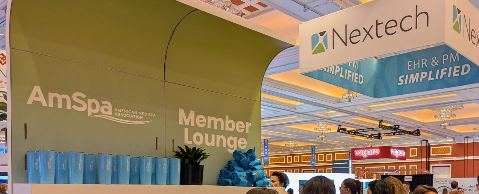 Located in the heart of the expo hall, the AmSpa Member Lounge was the place to be last year. Attendees with Basic and Plus memberships were able to rest their feet, refill their coffee, pick up exclusive member merchandise, and spend some time playing with therapy puppies courtesy of our friends at the Nevada SPCA.